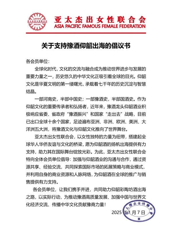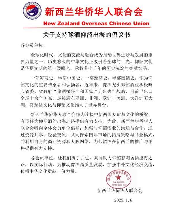 近日,正值首個“非遺年”到來之際,美國、加拿大、英國、法國、新加坡、尼日利亞、塞爾維亞等25個海外僑團,公開發布倡議書,支持豫酒仰韶出海。