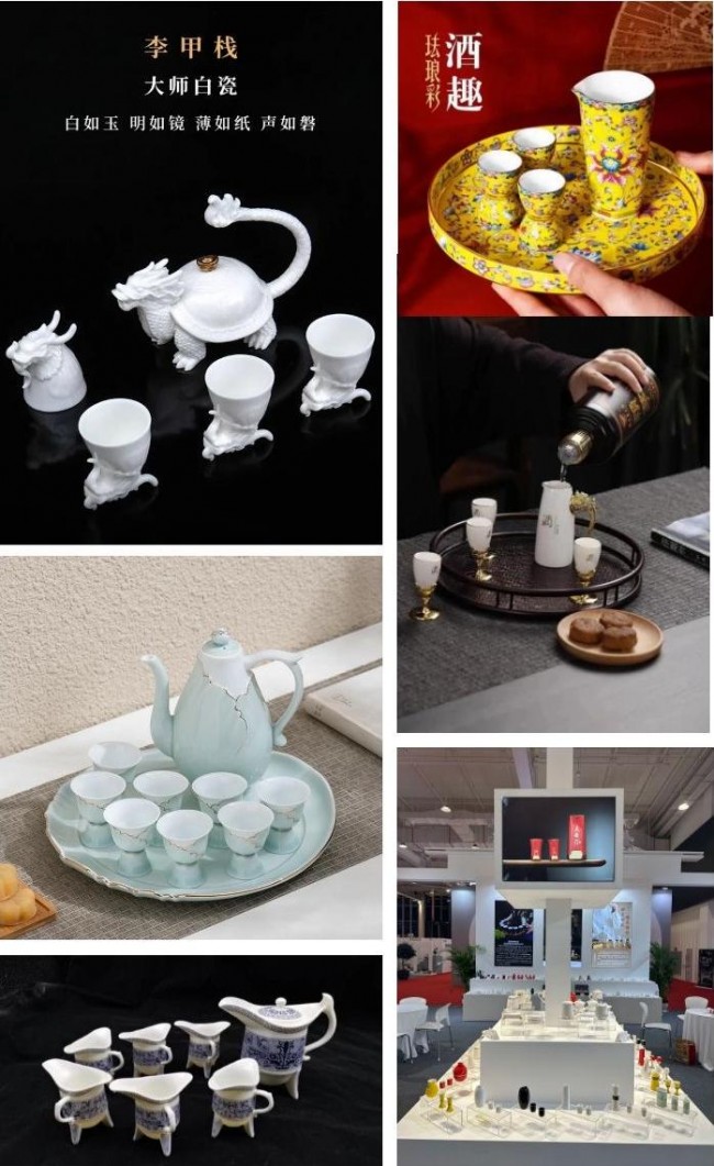 古人云:“非酒器無以飲酒,飲酒之器大小有度”,展會上大大小小的瓷制酒器具精美絕倫,應接不暇,造型上琳瑯滿目,精彩紛呈,工藝水平日臻完美。酒壺、酒杯、酒盞、酒碗……千差萬別的酒器,品種豐富,色彩多姿的酒具,從古樸到精致,從合用到專用。有的雅致玲瓏,色澤溫潤,有的精致典雅,晶瑩如玉,有的花紋天然,光亮透明,尤其是白瓷酒具繪以山水、花鳥、人物、故事,成為真正的藝術品,如同一場視覺盛宴,得到文化的熏陶和美的享受。