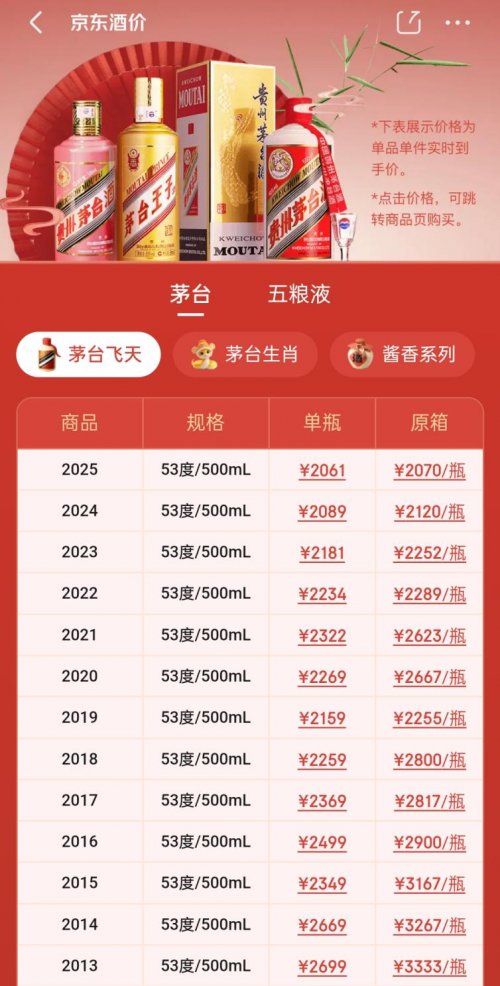 盡管白酒市場(chǎng)整體進(jìn)入傳統(tǒng)淡季,市場(chǎng)上出現(xiàn)飛天茅臺(tái)價(jià)格波動(dòng)的聲音,但通過(guò)上述市場(chǎng)調(diào)研顯示,情況并非表面看起來(lái)那么簡(jiǎn)單。飛天茅臺(tái)在核心消費(fèi)群體中依然供不應(yīng)求,價(jià)格保持穩(wěn)健。根據(jù)8月30日京東酒價(jià)數(shù)據(jù)顯示,2025年的53%/500ml的飛天茅臺(tái)單瓶售價(jià)為2061元,整箱價(jià)格為2070元,均保持在2000元以上。市場(chǎng)表現(xiàn)與京東平臺(tái)上的整體行情基本吻合,也印證了市場(chǎng)需求依舊旺盛、供需格局緊平衡的現(xiàn)狀。