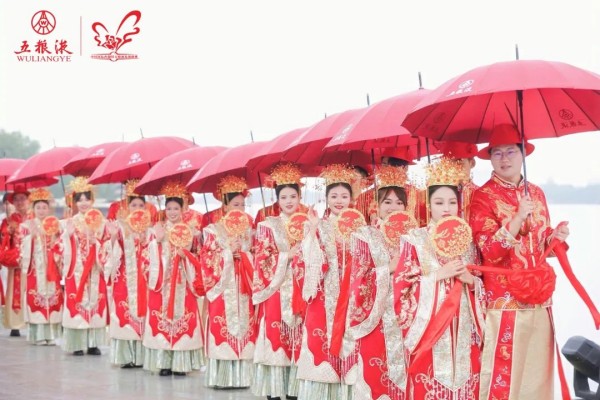例如,五糧液不僅定位“喜酒”推出次高端白酒五梁紅、與施華洛世奇合作推出全球首款高端婚宴專屬產品“五糧液·緣定晶生”等,還連續多年冠名中國國際西湖情玫瑰婚典,與婚宴場景強綁定。