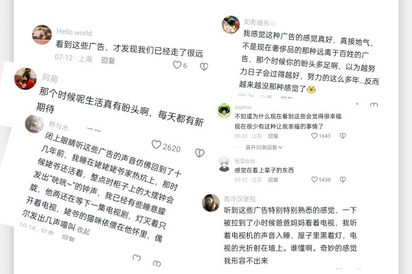 不少網友表示,“看到這些廣告,才發現我們已經走了很遠”,“看的不是廣告,而是回憶童年”,“感覺在看上輩子的東西”……