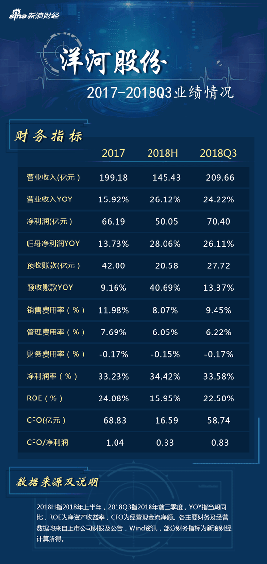 2017年洋河實(shí)現(xiàn)營(yíng)業(yè)收入199.18億元,是五糧液的66%;實(shí)現(xiàn)凈利潤(rùn)66.27億,也是五糧液的66%。而在這前,洋河的凈利潤(rùn)一度占到過(guò)五糧液凈利潤(rùn)的84%。